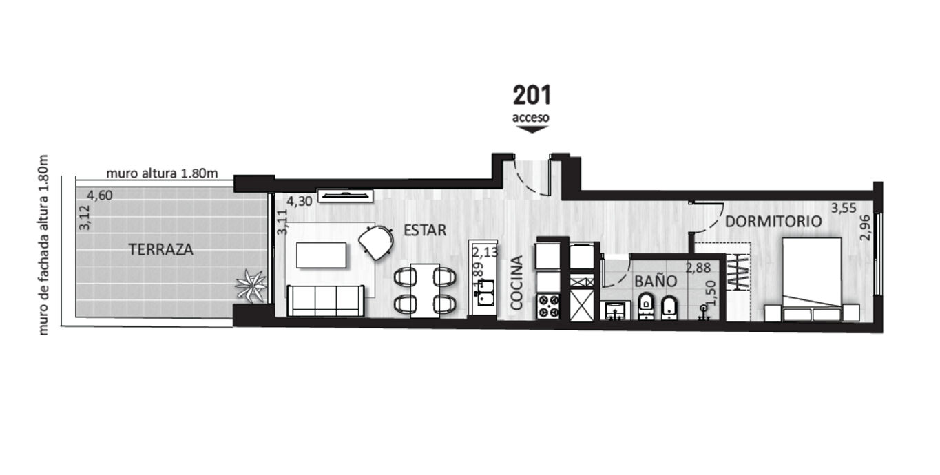 -1 dormitorio con salida al patio