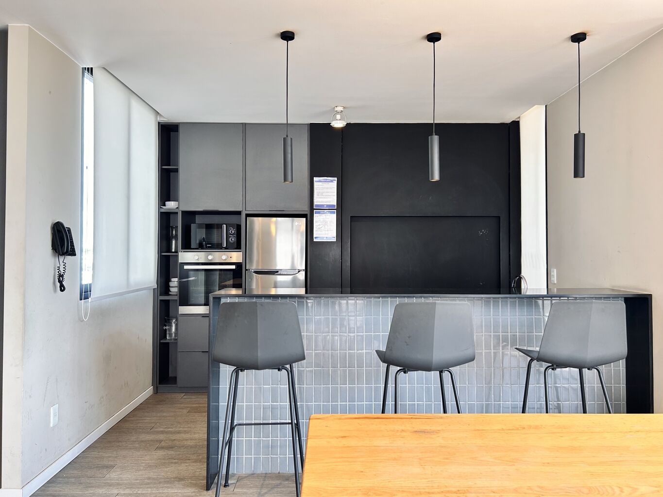 Living comedor con cocina integrada.