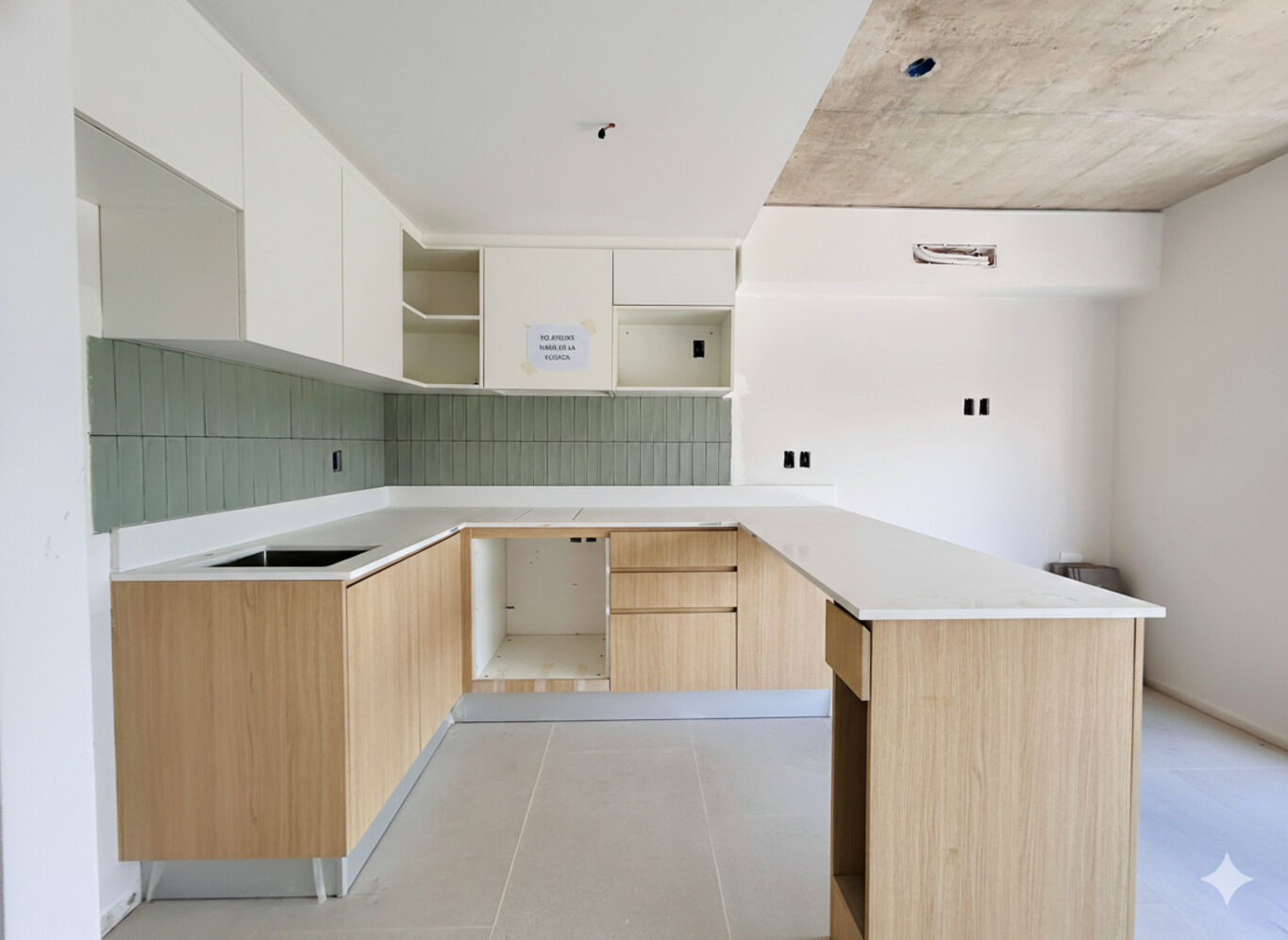 Cocina integrada , con barra desayunadora