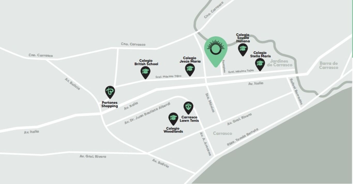El complejo Fusione se ubica en la zona residencial de Carrasco, cercana a servicios, instituciones educativas y avenidas, pero se inserta en un entorno de calles arboladas, tranquilas y despejadas. Se compone por dos edificios, uno de dos pisos y otro de tres que combina las características de un apartamento en tipologías de casas con espacios amplios y la posibilidad de disfrutar de los jardines privados.Todas las propiedades se encuentran rodeadas de vegetación, y al contar con doble orientación cuentan gran con luz solar y ventilación. Además, desde todas las unidades se tiene acceso directo al garaje.