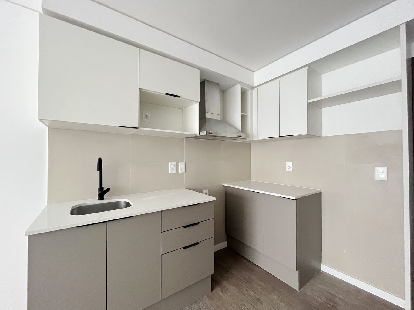Cocina integrada con campana , moderna y funcional.