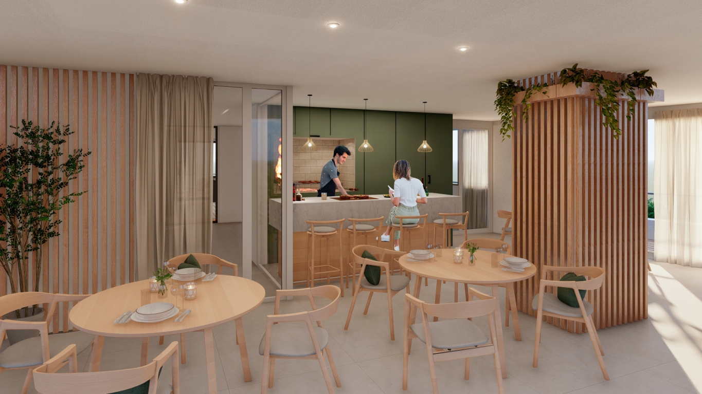 2 amplias barbacoas, rincón de juegos para niños, espacio de cowork, portería física de 9 a 21 hs y portería remota 24 hs.