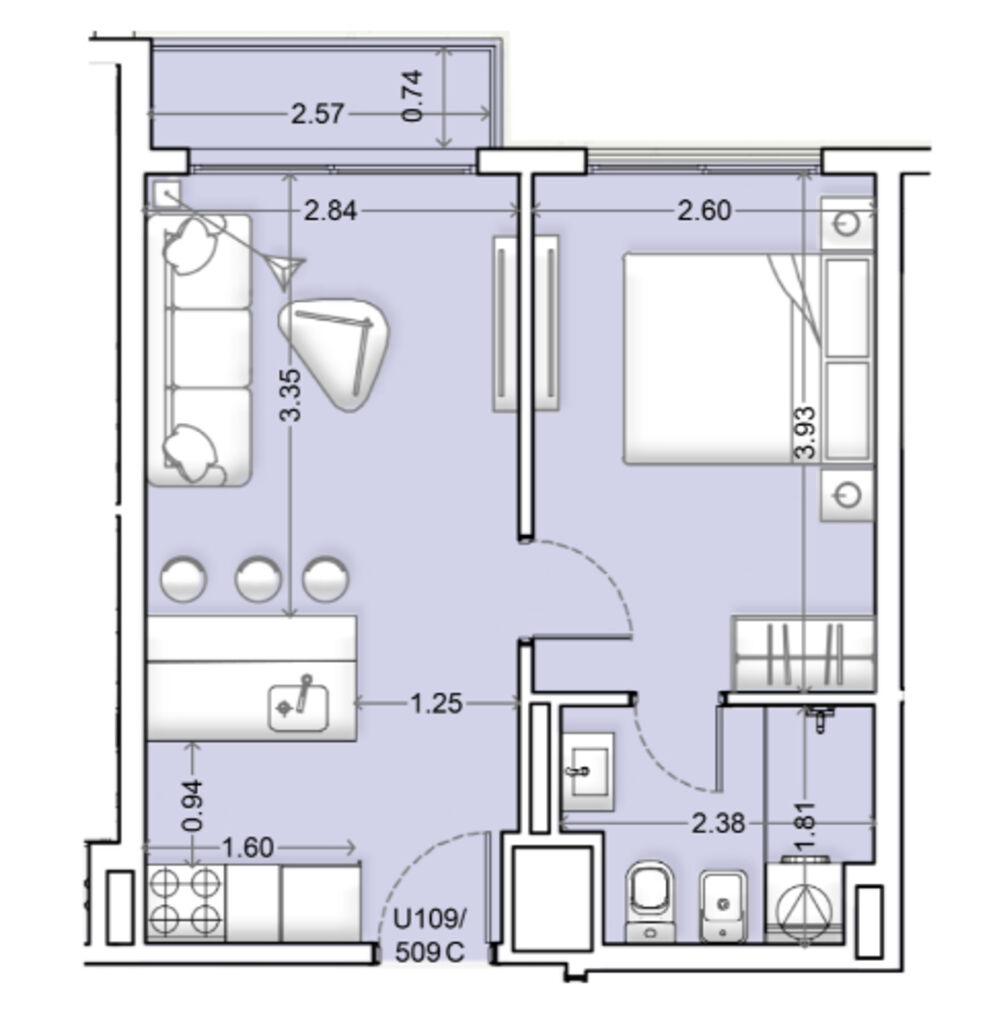 Superficie Construida: 39 m²